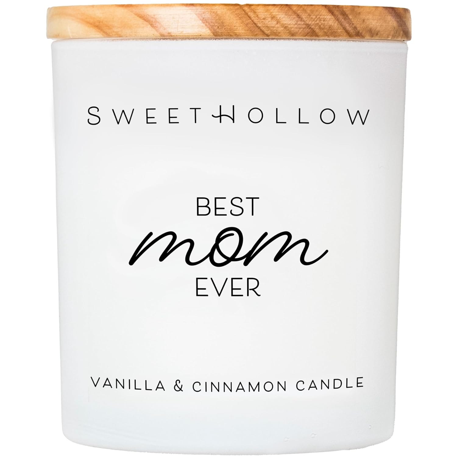 Treat mom to the gift she really wants: A fragrant candle that tells her she's the BEST MOM EVER! This scented candle will last much longer than a bouquet of flowers. It's a candle that captures the authentic aroma of creamy vanilla and sweet cinnamon. This present will make you the best son or daughter ever! The matte white glass with natural wood lid provides an elegant look that matches any decor.