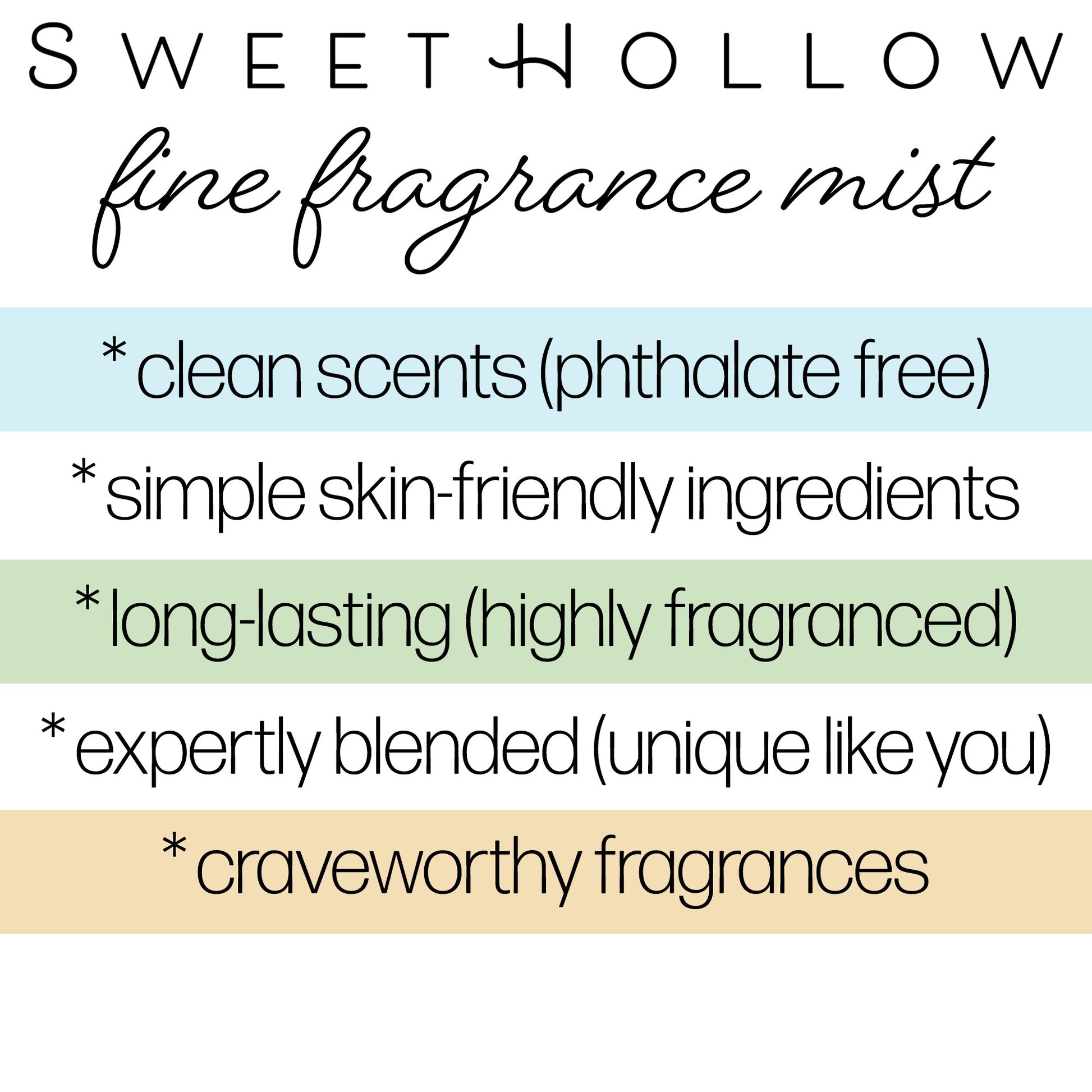 Introducing SweetHollow's luxurious Fine Fragrance Mists, the perfect way to elevate your daily beauty routine. Infused with a blend of essential oils for an authentic fragrance experience, our mists are designed to leave your skin smelling irresistibly fresh. Whether you're heading to work, going out for date night, or simply want to feel refreshed throughout the day, our Fine Fragrance Mists are the perfect solution. With a convenient spray bottle for easy application, you can spritz on a burst of fragrance anytime, anywhere.