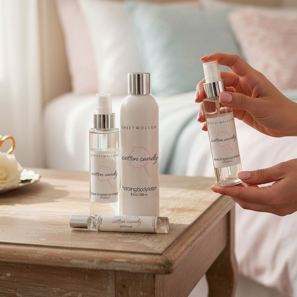 - COTTON CANDY FRAGRANCE: The smell of spun sugar and ripe strawberries are abundant in this alluring scent. Top notes of strawberry, black currant, and raspberry. Middle notes of sugar and freesia. Base notes of vanilla, light musk, and tonka bean.